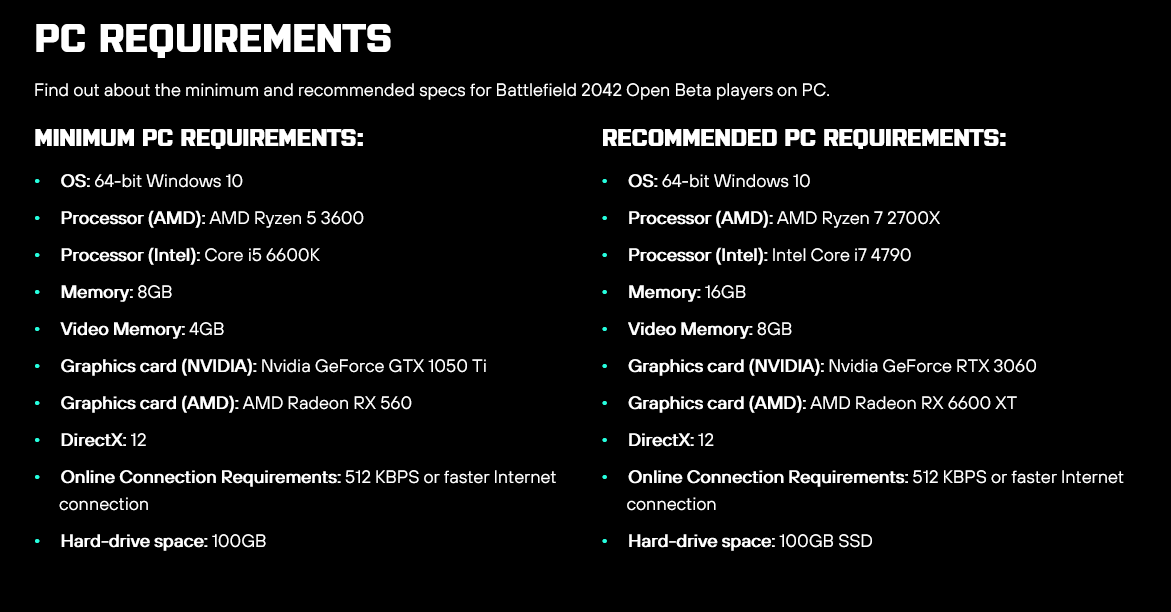 It`s worth noting that the final release specifications, detailed on the official Battlefield website, vary slightly from those provided for the upcoming open beta test.