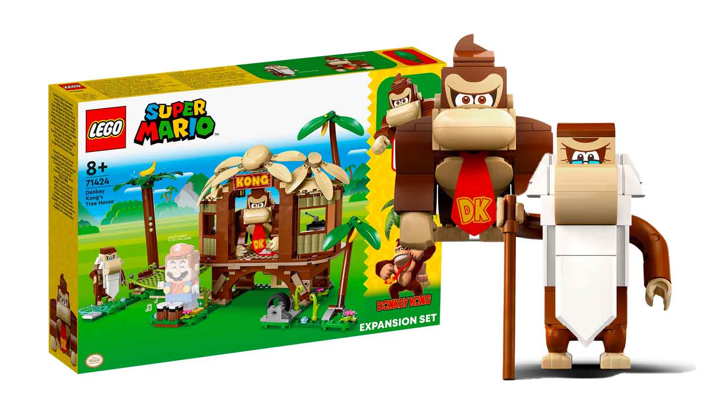 The Donkey Kong`s Tree House Expansion Set allows you to construct DK`s iconic home. This 555-piece set functions differently from typical LEGO Super Mario `levels` with enemies; instead, Cranky Kong awards coins to LEGO Mario, Luigi, or Peach figures. These interactive figures can also attach to Donkey Kong`s back. The set includes Cranky Kong, a hammock, conga drums, palm trees, a Bowser flag, and a Warp Pipe. Launched in August 2023, this set has been particularly elusive since its retirement by LEGO, being out of stock at most retailers throughout 2025.