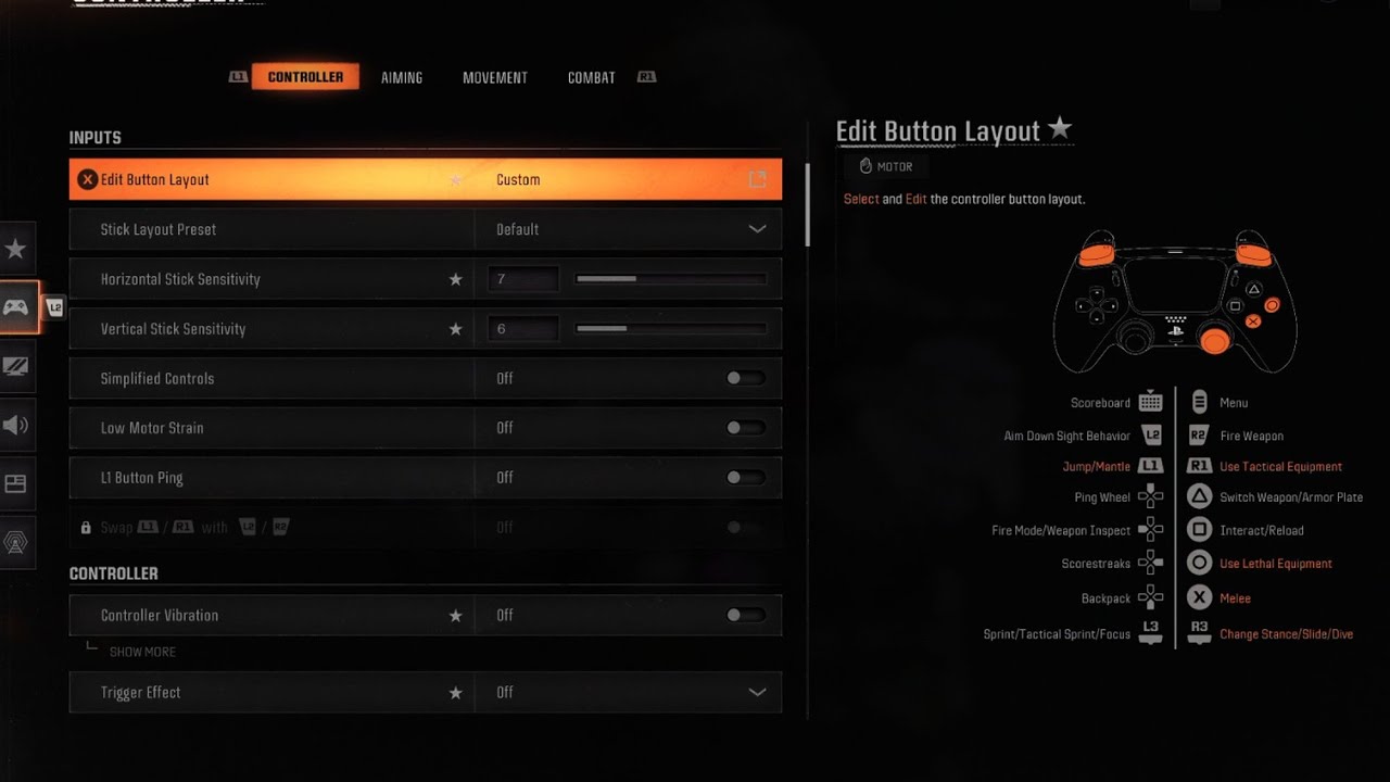 The choice between Default and Tactical button layouts often depends on your controller type. Tactical is advised for standard controllers, mapping crouch/slide/dive to the thumbstick for quicker actions without repositioning your thumb. If you use a custom controller (e.g., Scuf) with remappable buttons, Default may suffice. For PlayStation 5 users, disabling Trigger Effect is highly recommended for more precise aiming, despite its immersive feel.